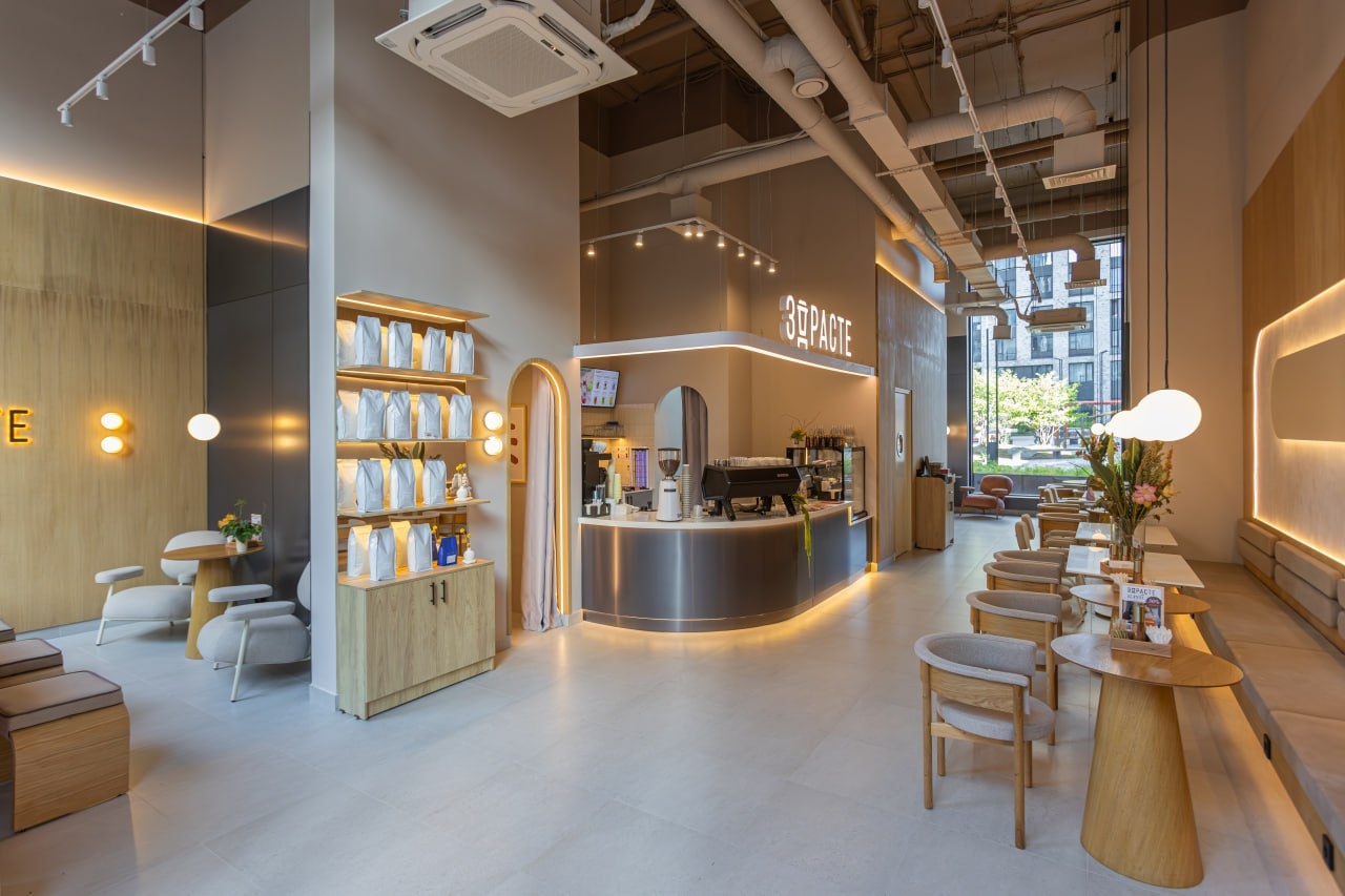 18 августа на улице Новочеремушкинская, 17 появилась новая кофейня популярной сети «ЗДРАСТЕ». Это уже 95-я точка бренда, но с особым акцентом — здесь сделали ставку на гибридный формат: интерьер собрали из элементов премиальной линейки «ЗДРАСТЕ БИСТРО», а цены остались привычными для гостей.