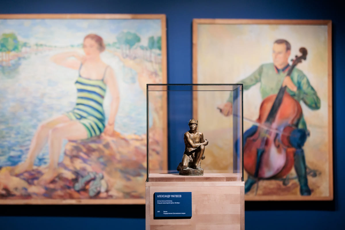 «На одной из выставок группы «Четыре искусства» были представлены две статуэтки Александра Матвеева, важного саратовского художника, одного из главных скульпторов советского периода, — рассказывают кураторы. — Эти небольшие образы красноармейца и крестьянина — эскиз к двухметровой скульптурной композиции «Октябрь».