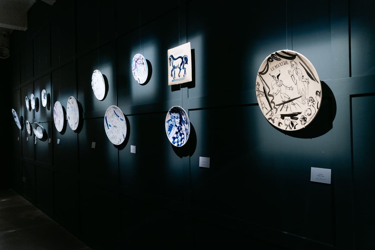 Ищите: театральные зарисовки, страстное «Танго», ироничного «Кота Бегемота» в компании героев «Мастера и Маргариты» на вазах, целые стены фарфора, тарелки всех форм и размеров, восходящие то к Гжели, то к мощным мазкам экспрессионистов.