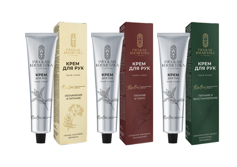 Новинка сезона — парфюмированные кремы для рук в стильных алюминиевых тубах. Три новых аромата: «Увлажнение и питание» с ветивером, «Питание и тонус» с пачули и «Питание и восстановление» с ароматом табака и ванили.