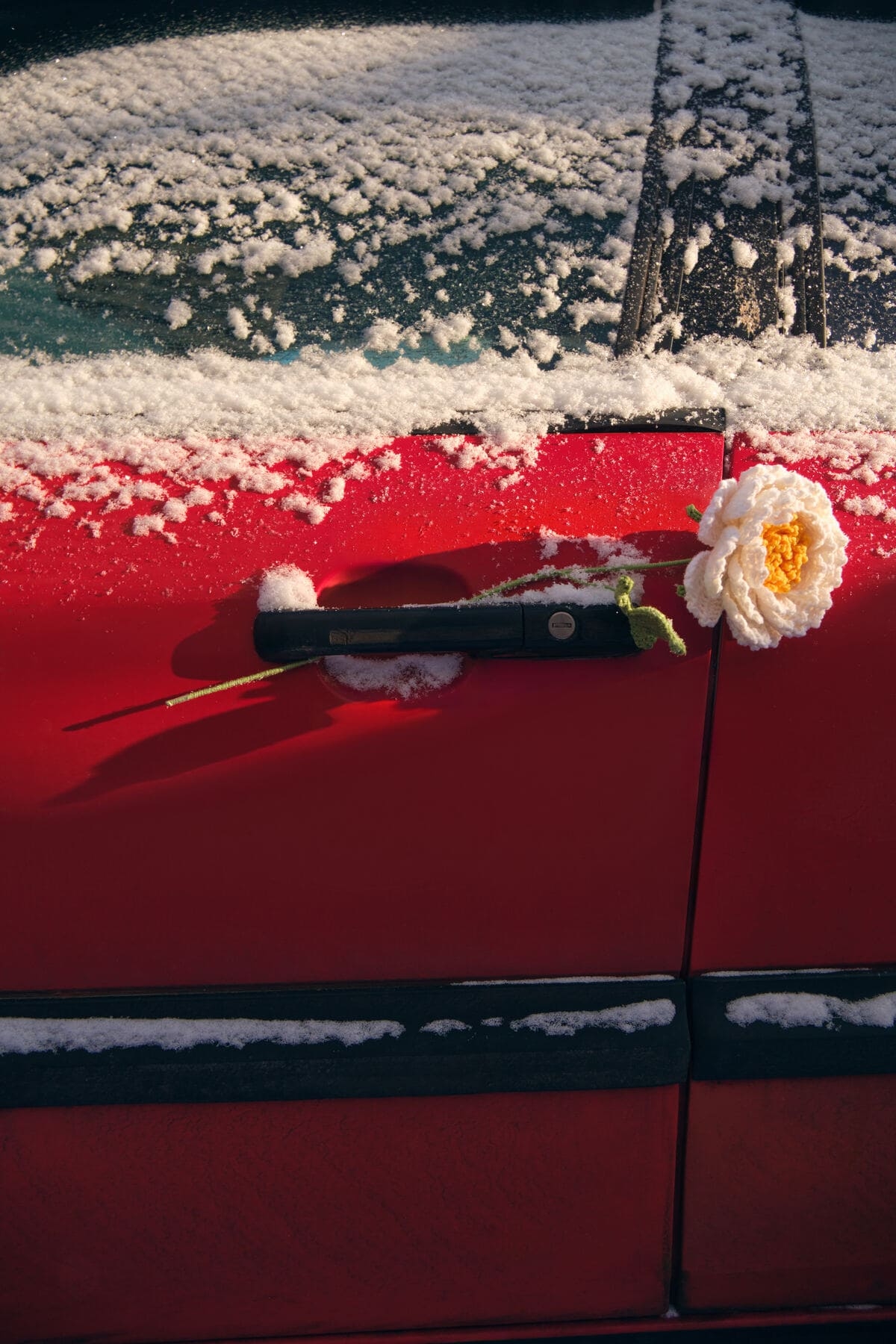 Визуальная часть проекта разворачивается в городском пространстве: в креативной съёмке вязаные цветы появляются среди зимнего ландшафта — «прорастают» сквозь снег и асфальт, обвивают дорожные знаки и становятся частью повседневной городской среды.