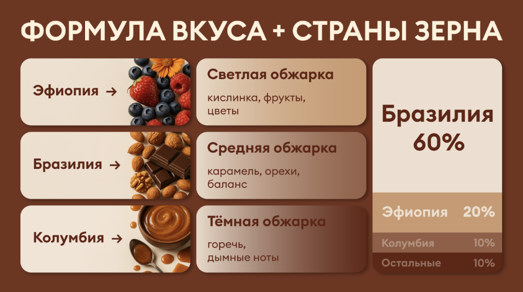 «Вкусы кофе формируются как характер: одни тянутся к классике, другие ищут новые впечатления. Бразилия остаётся фаворитом с долей около 60%, Эфиопия подбирается к 20%, Колумбия держит 10%. Остальное — это Кения, Танзания, Китай, которые набирают популярность»