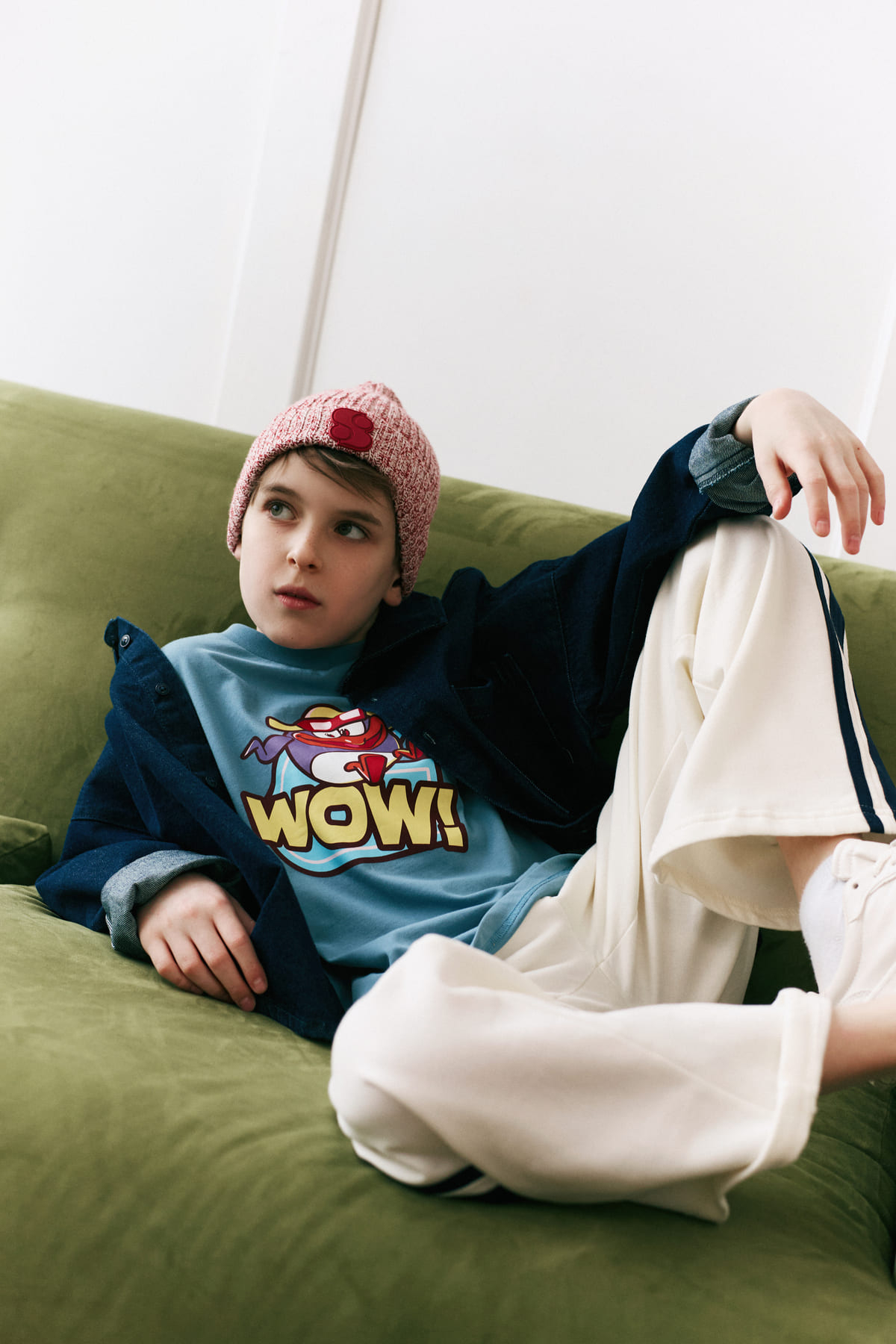 В коллекции — вещи, которые хочется носить каждый день: оверсайз-футболки, уютные лонгсливы, свитшоты, олимпийки на молнии, шорты и мягкие джоггеры из 100% хлопка. Всё продумано для комфорта, а размерный ряд от 116 до 170 см подойдет почти каждому ребёнку.