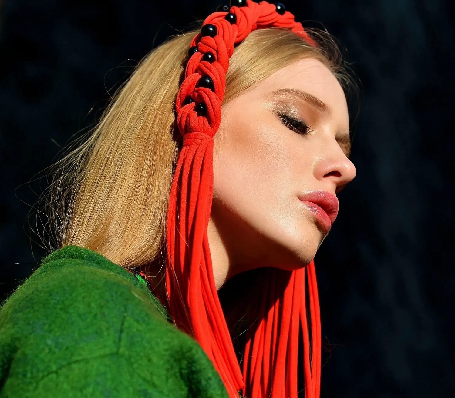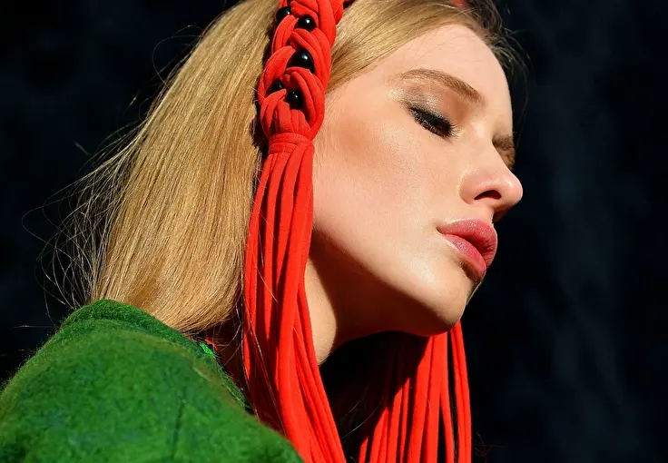 На снимках модель появилась в ярко-красных перчатках - фирменного цвете Diet Coke.