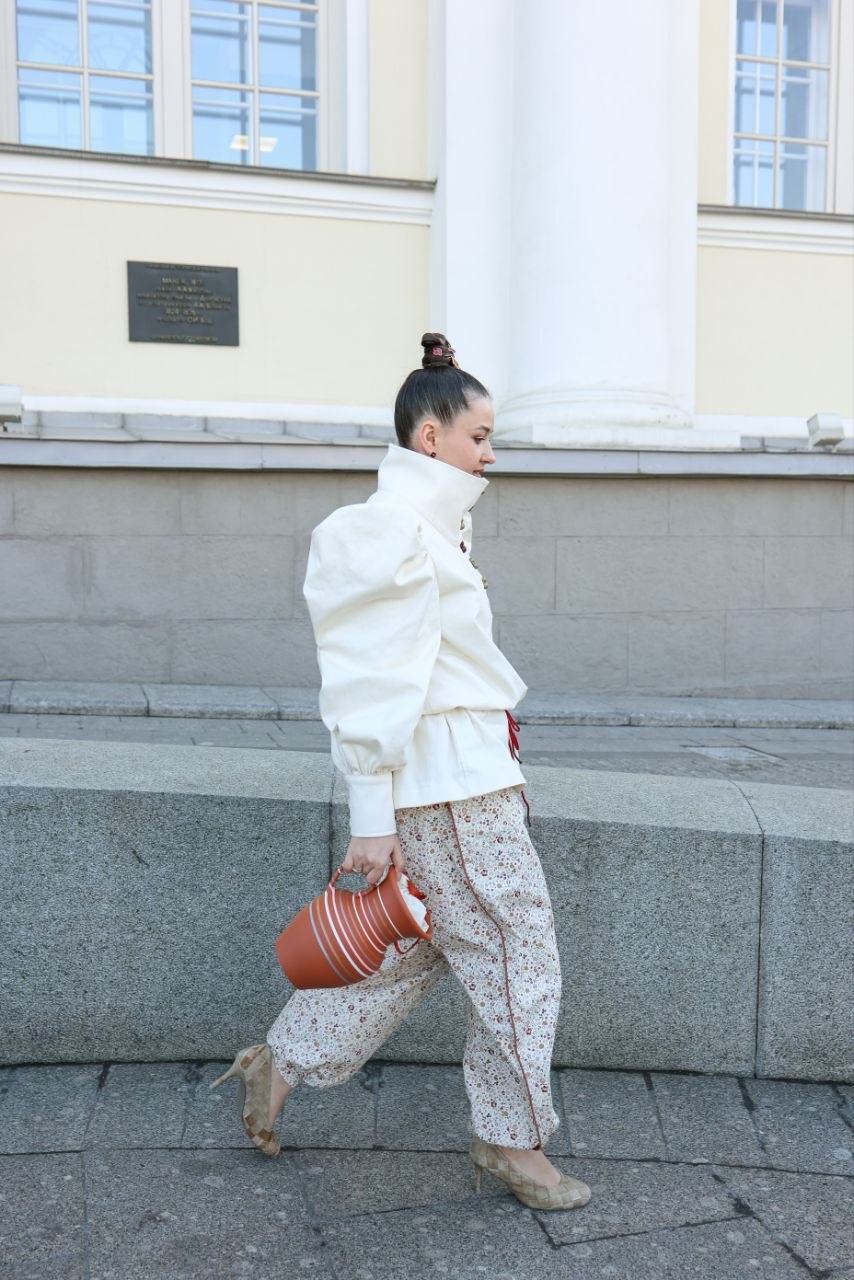 Обладательница образа отдает дань уважения бабушкиному халату и пирожкам — это целый манифест заботы и ощущения безмятежных дней. Просторные линии, мягкие ткани и узнаваемые детали переносят нас в атмосферу домашнего очага, позволяя, тем не менее, выглядеть стильно и уверенно в любой ситуации.