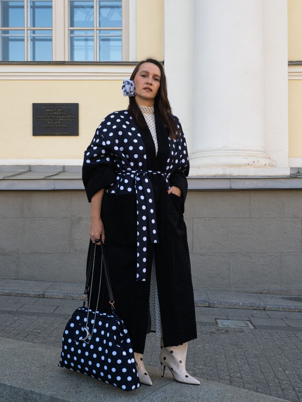 Обладательница образа с принтом "горошек", созданного талантливым алтайским дизайнером Юлией Чёрных, словно демонстрировала, что гороха много не бывает. Тем самым она излучала уверенность и шарм, показывая, как простое решение может стать настоящим заявлением о себе.