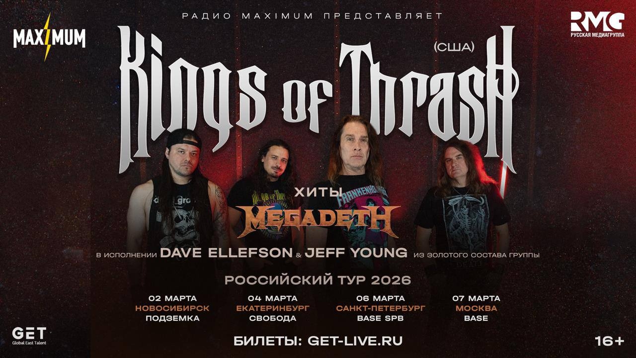 В марте 2026 года радио MAXIMUM подготовило для поклонников рока настоящий подарок. Впервые за последние пять лет в Россию приезжают легенды американского трэш-метала — Дэвид Эллефсон и Джефф Янг, музыканты золотой эпохи культовой группы Megadeth. Они выступят в составе своего проекта Kings of Thrash, созданного в 2022 году.