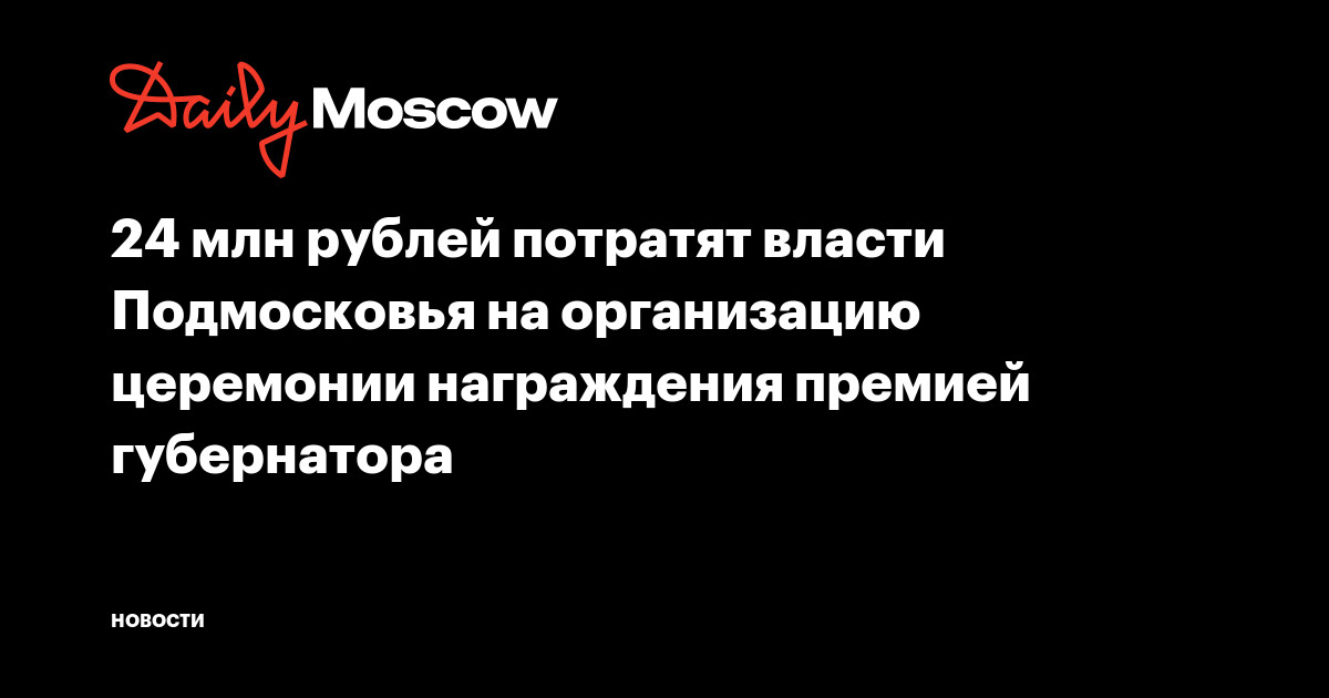 Организаторам церемонии награждения премией губернатора Московской области заплатят более 24 миллионов из регионального бюджета. Заявку на проведение аукциона на официальном сайте госзакупок подало Главное управление социальных коммуникаций Подмосковья.