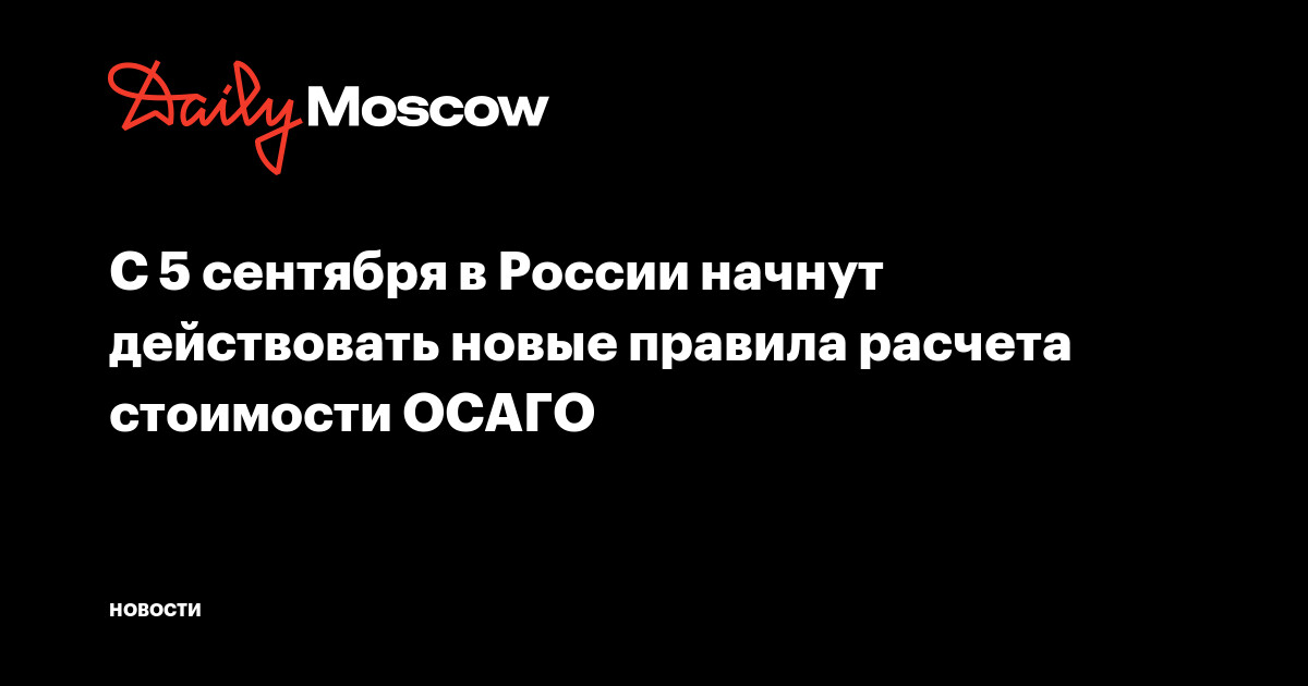 С 5 сентября в России начнут действовать новые правила расчета стоимости ОСАГО