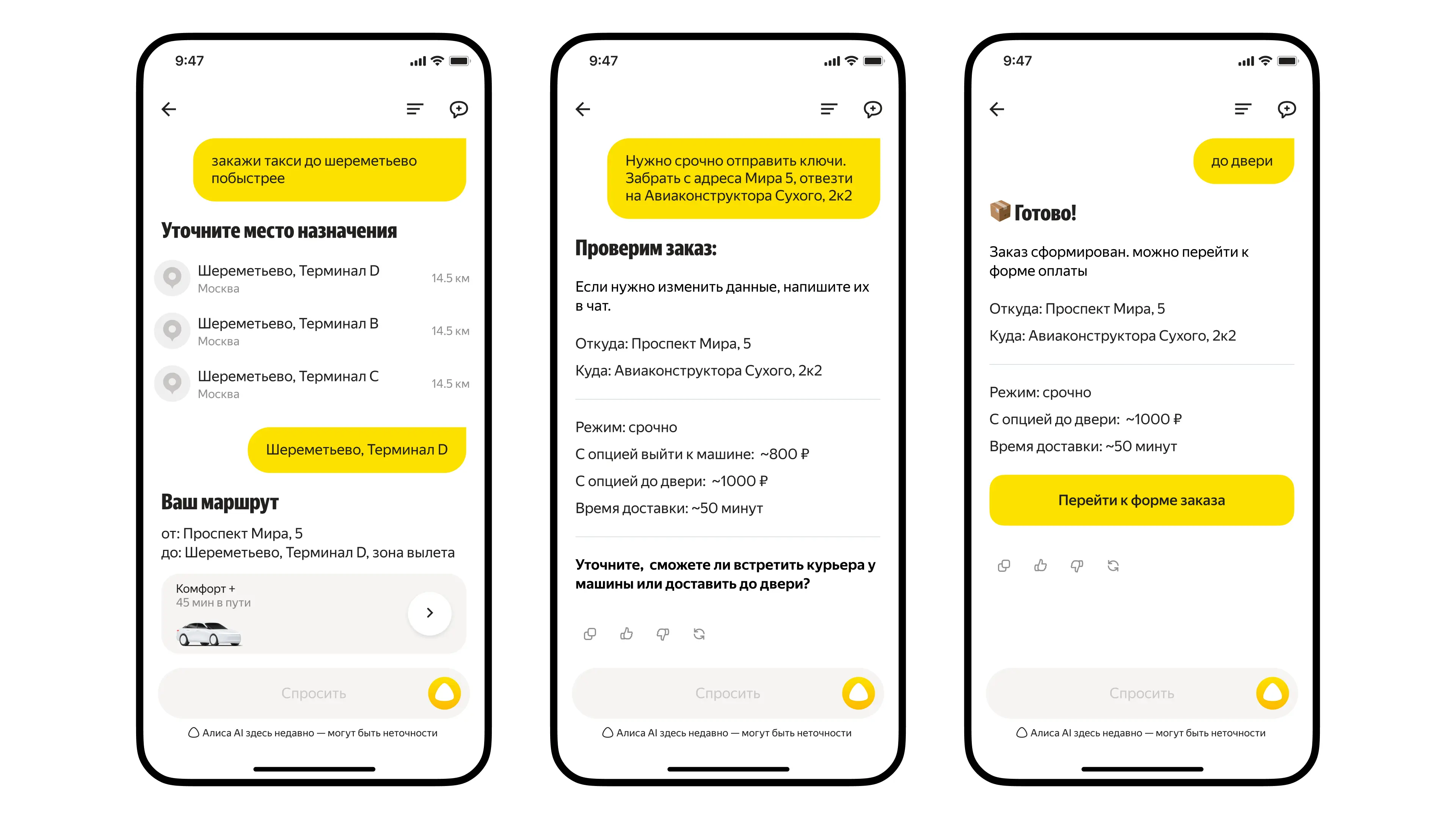 Алиса AI умеет подключать ИИ-агентов сервисов Яндекс Go — Такси, Еды, Лавки и Доставки — и определять, какой из них лучше подойдёт для решения задачи.
