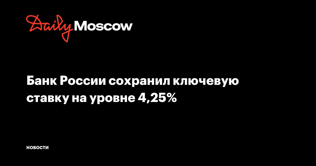 Центробанк сохранил ключевую ставку на уровне 4,25% годовых по итогам заседания совета директоров в пятницу, 23 октября. Об этом сообщается на официальном сайте регулятора.