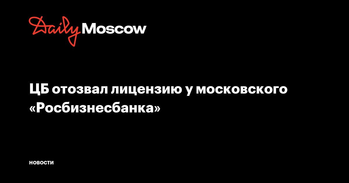 ЦБ отозвал лицензию у столичного «Росбизнесбанка», говорится в пятницу, 23 октября, в сообщении на официальном сайте регулятора.