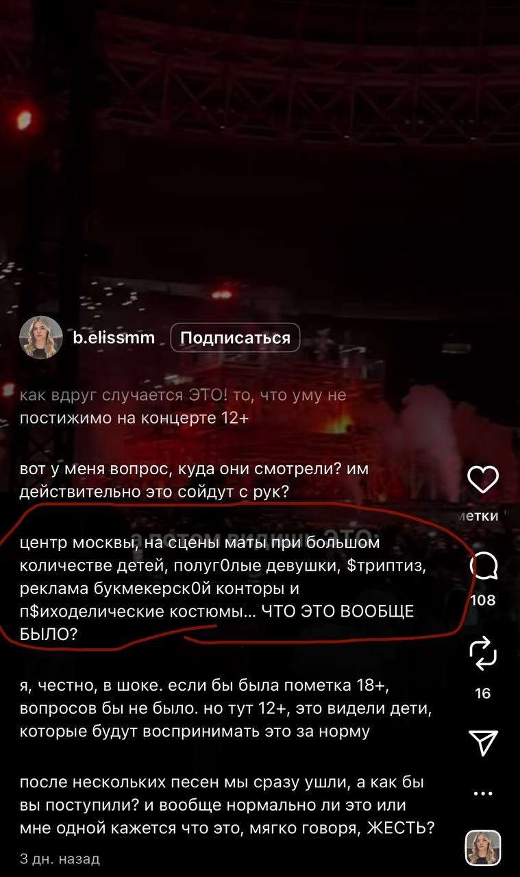 Критические замечания высказала и председатель Ассоциации родительских комитетов и сообществ Ольга Леткова. Она подчеркнула, что родители возмущены происходящим на сцене, считая это недопустимым для концертов с подростковой аудиторией.