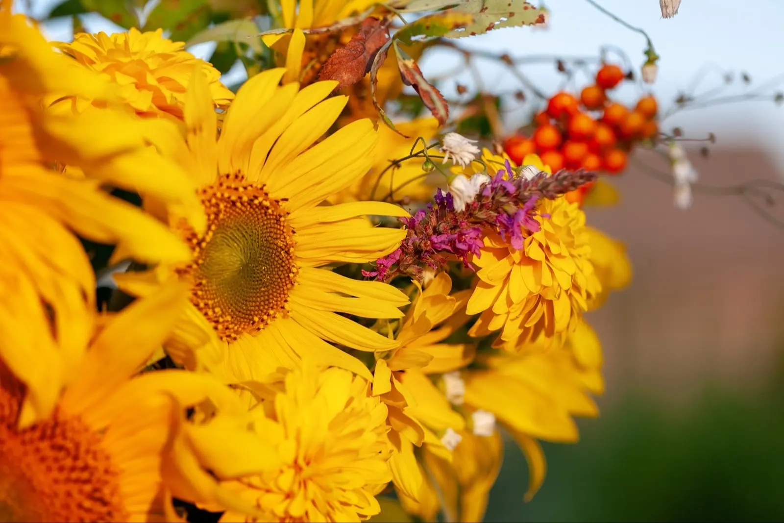 Цветы также используют сезонные, добавляя в букеты осеннюю листву, ягоды, яблоки, каштаны и желуди. Это снижает стоимость букетов.
