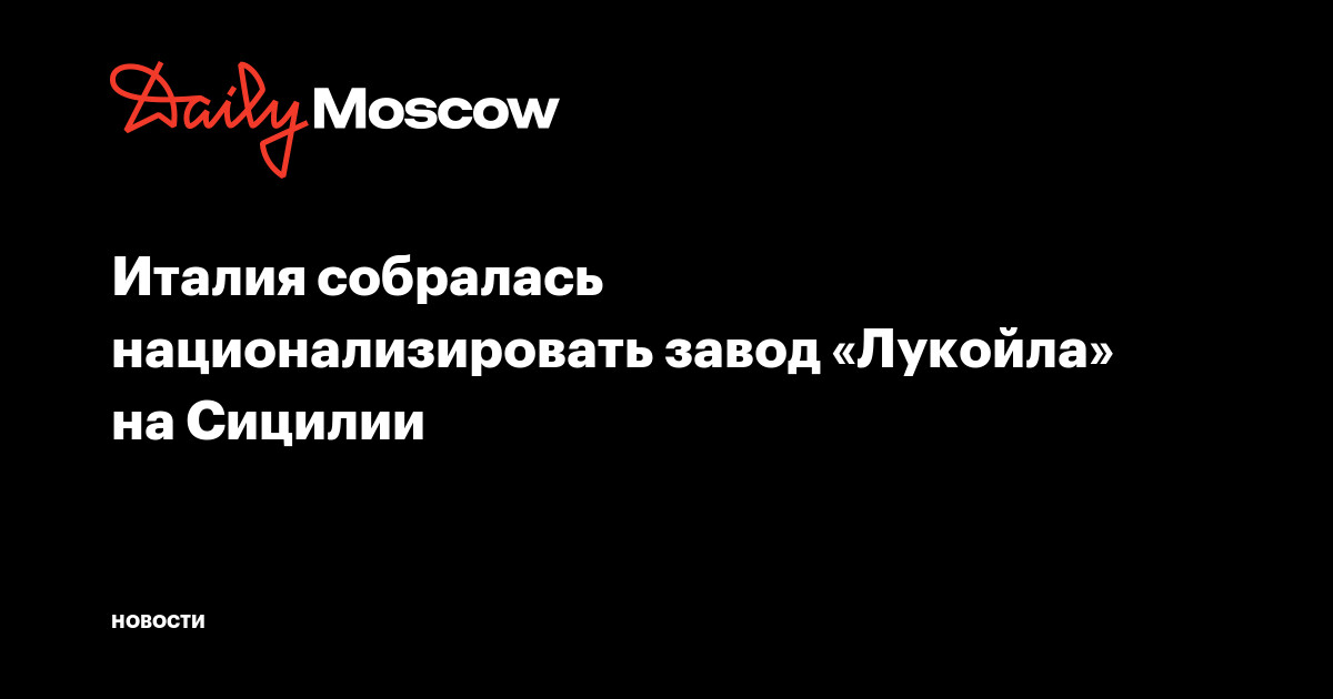 Как пишет La Repubblica, Италия собирается национализировать принадлежащий российскому «Лукойлу» нефтеперерабатывающий завод ISAB на Сицилии. Глава Минэкономики Джорджетти и министр по делам предприятий и продукции Италии Урсо в данный момент занимаются разработкой процедуры перевода завода под контроль Италии. Окончательное решение будет принято на заседании правительства 1 декабря.