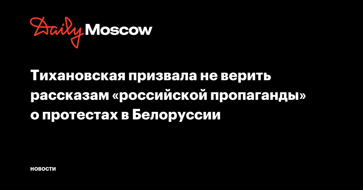 Занявшая второе место на президентских выборах в Белоруссии Светлана Тихановская записала видеообращение к гражданам России, в котором заявила, что «российская пропаганда пытается максимально исказить» истинную причину протестов в Белоруссии. Видеозапись появилась в Telegram-канале «Пул первой».