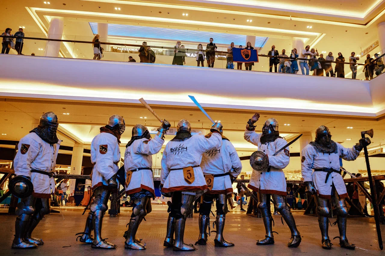 ТРЦ «Ривьера» стала ристалищем пятичасовых исторических средневековых боёв женских и мужских сборных.