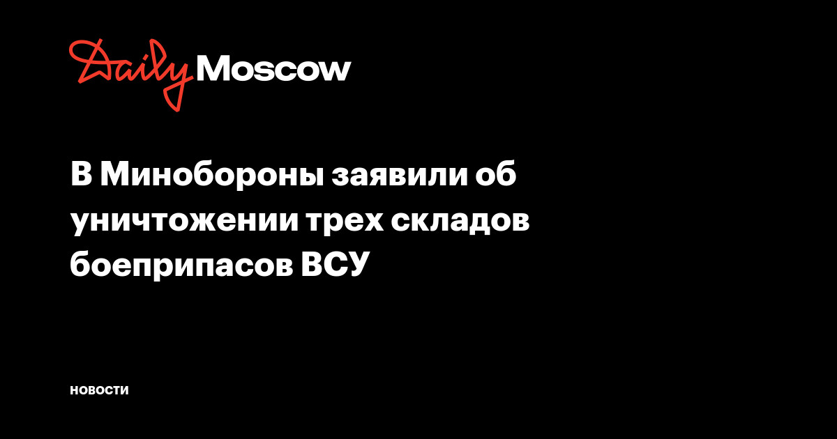 Минобороны заявило об уничтожении трех складов боеприпасов ВСУ.