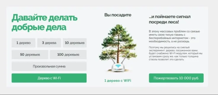 Новый проект фонда позволяет каждому желающему посадить дерево, которое в будущем станет источником стабильного Wi-Fi-сигнала.