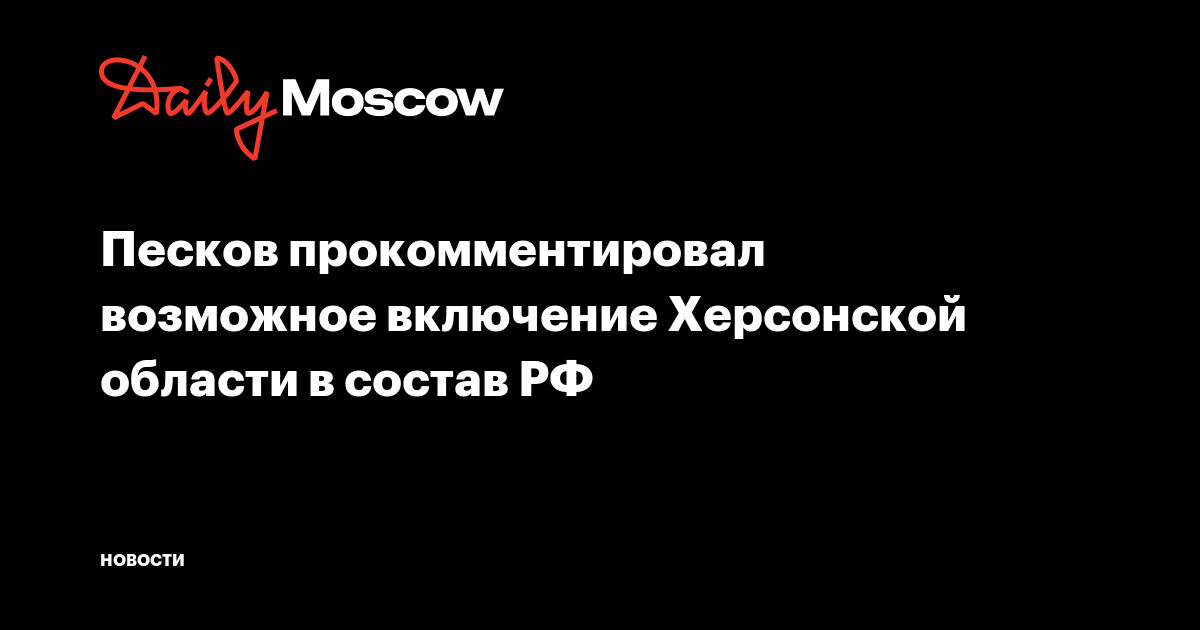 Официальный представителя Кремля Дмитрий Песков прокомментировал возможное включение Херсонской области в состав Российской Федерации.
