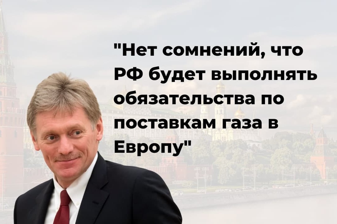 Официальный представитель Кремля Дмитрий Песков заявил, что нет никаких сомнений в том, что Россия будет выполнять обязательства по поставкам газа в Европу.