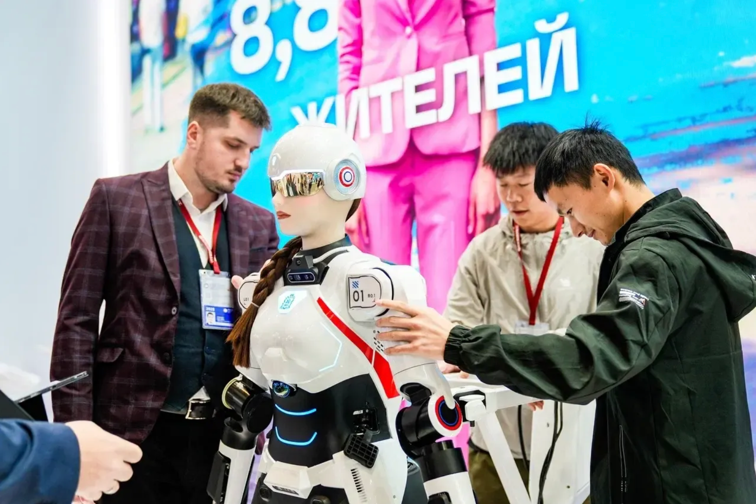 Робот София, оснащённый ИИ, выступает в роли цифрового консультанта: она информирует предпринимателей на русском и китайском языках о мерах поддержки, выборе площадок и запуске бизнеса.