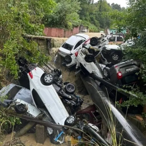 Потоки воды после дождя в сочинской Хосте унесли десяток автомобилей