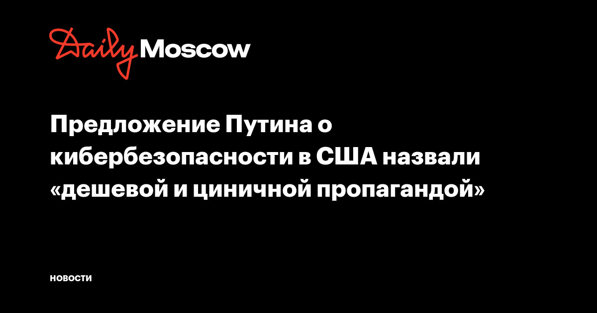 Предложение Путина о кибербезопасности в США назвали «дешевой и циничной пропагандой»