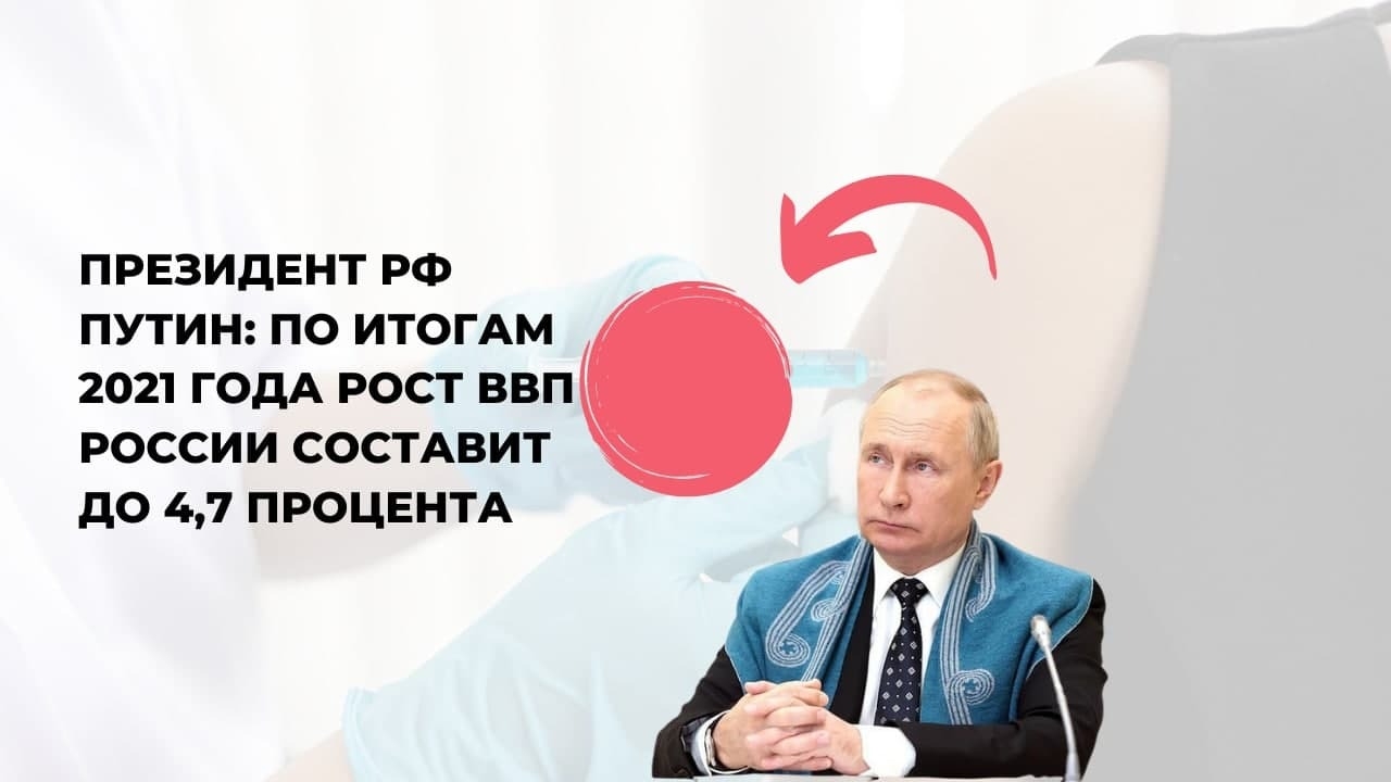 На онлайн-саммите Азиатско-Тихоокеанского экономического сотрудничества, посвященном борьбе с распространением коронавируса, президент России Владимир Путин сообщил, что рост российского ВВП по итогам 2021 года составит 4,7%. По его мнению, хотя это и не самый высокий в регионе прирост, однако для российской экономики России это вполне хороший показатель.
