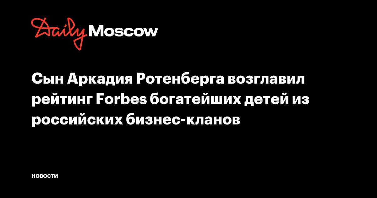 Сын Аркадия Ротенберга возглавил рейтинг Forbes богатейших детей из российских бизнес-кланов
