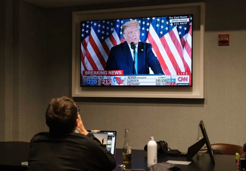 Крупнейшие американские телекомпании ABC, CBS и MSNBC прервали прямую трансляцию с пресс-конференции действующего лидера Соединенных Штатов Дональда Трампа после того как он сделал заявление о мошенничестве на прошедших выборах, передает The New York Times.