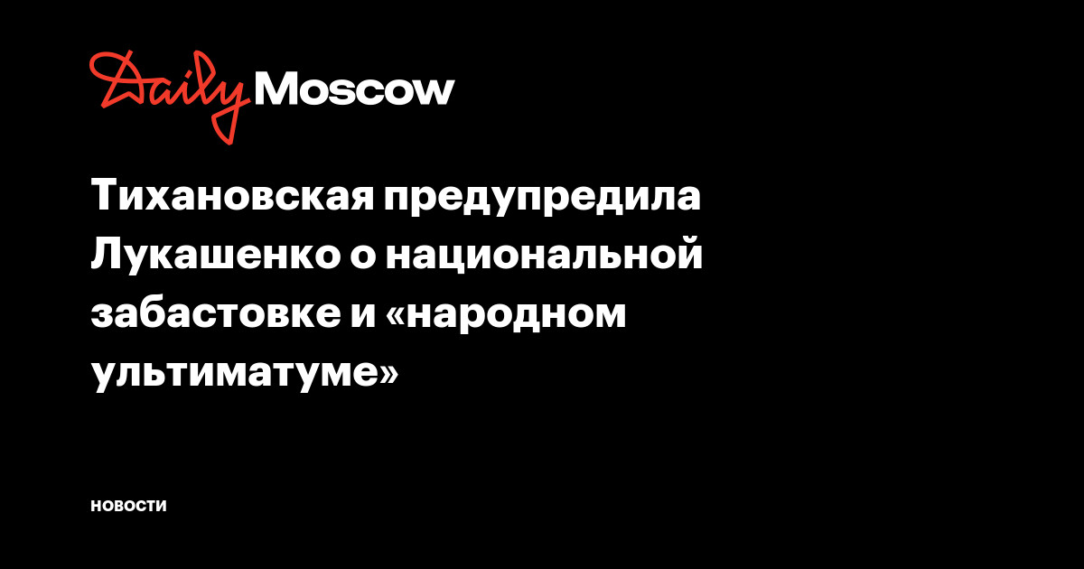 Тихановская предупредила Лукашенко о национальной забастовке и «народном ультиматуме»
