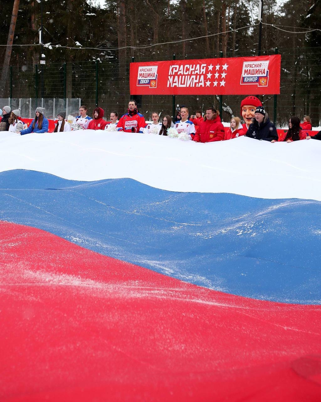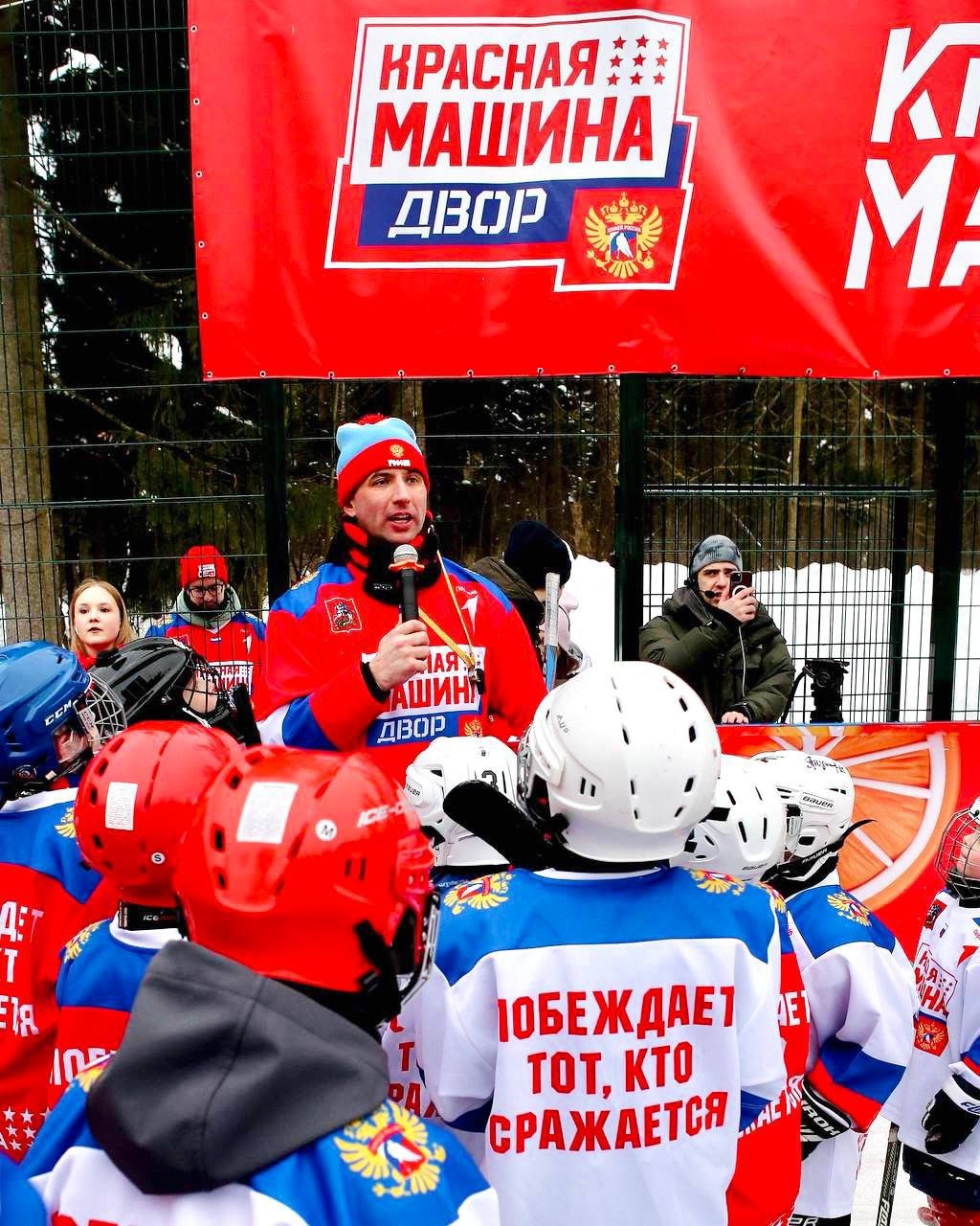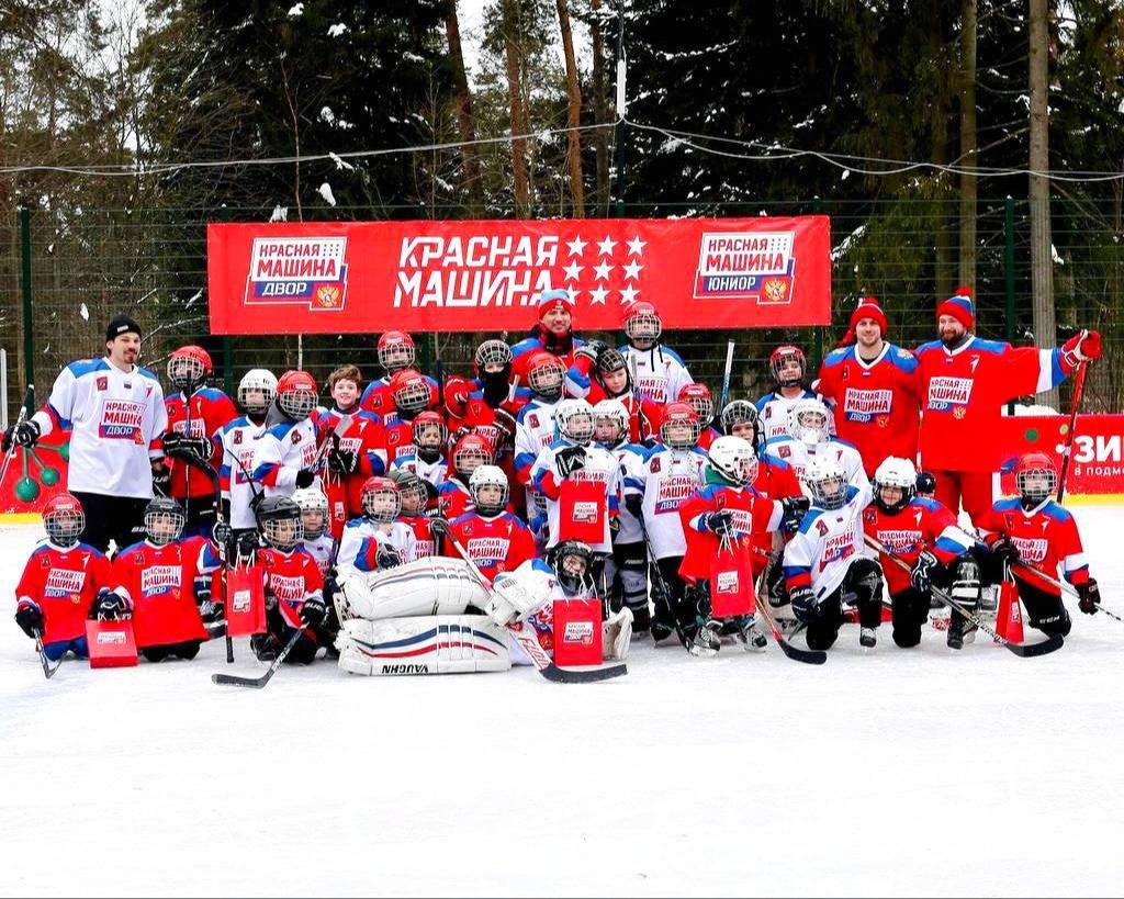 Программу открыли юные участники проекта «Красная Машина ДВОР». На льду ребята отрабатывали базовые элементы хоккейной подготовки — технику катания, повороты, владение клюшкой и игровые комбинации.