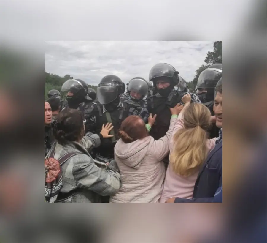Активисты рассказали о попытках выгнать людей из лагеря и блокировки территории с помощью ограды из колючей проволоки. Согласно последним данным, лагерь окружен со всех сторон. По словам активистов, сотрудники Росгвардии применяют в их отношении спецсредства: дубинки, слезоточивый газ и светошумовые гранаты.