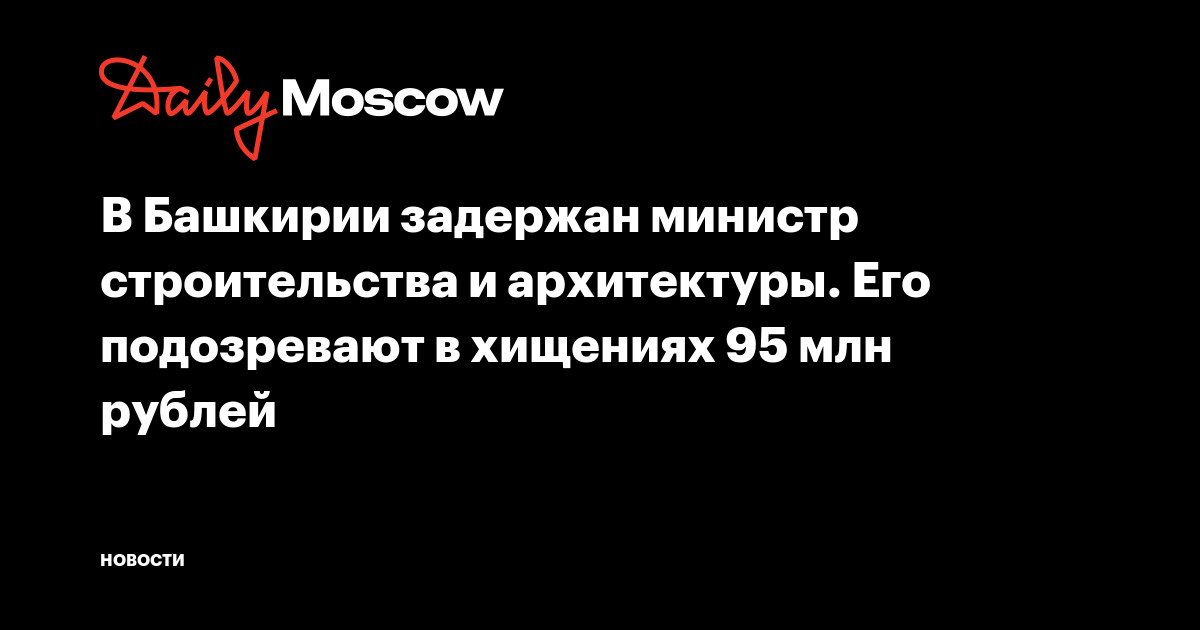 В Башкирии задержан министр строительства и архитектуры. Его подозревают в хищениях 95 млн рублей