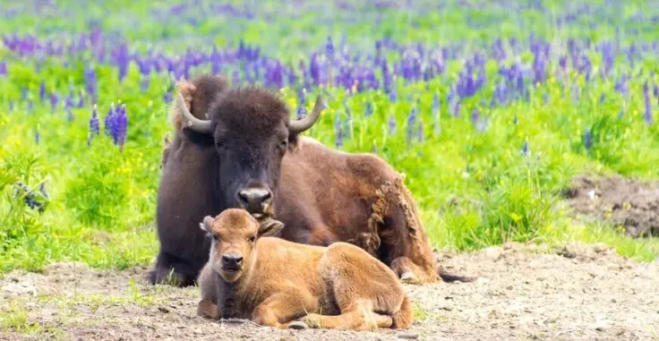 В Ленинградской области в Ново-Кавголовском лесопарке поселка Токсово в питомнике зубробизонов родился теленок.