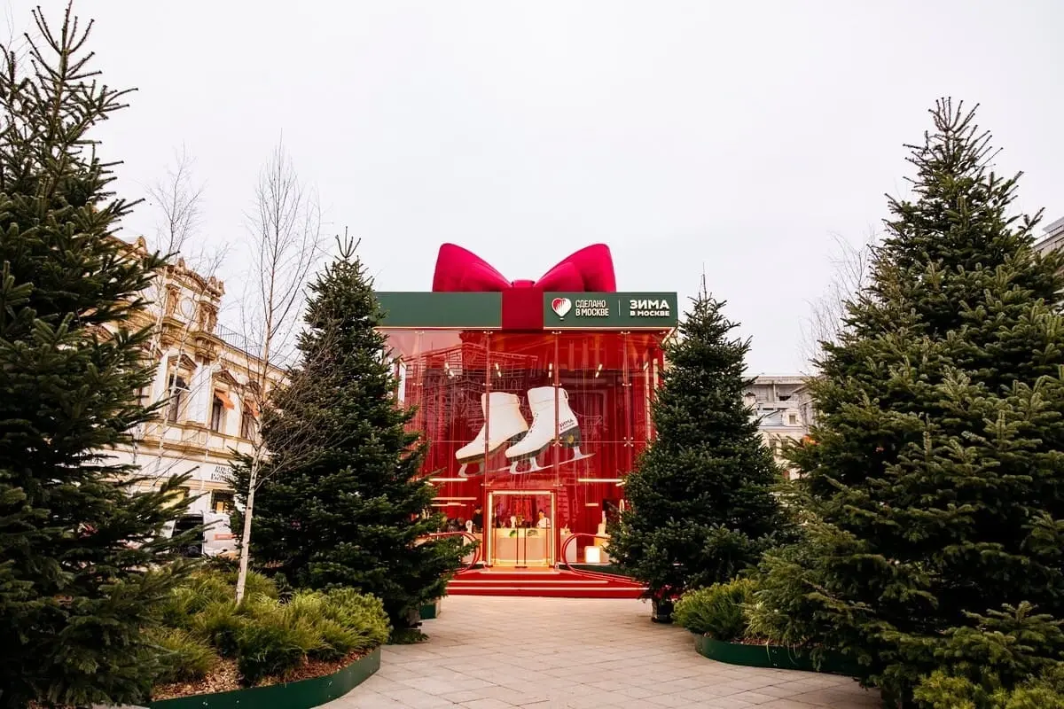 Напротив ЦУМа заработала огромная подарочная коробка с белоснежными коньками и вещами от 120 московских брендов.