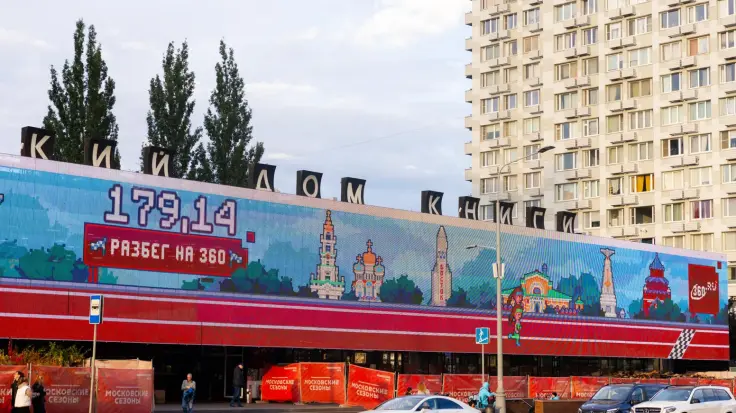 Игровые аватары промчались мимо здания Дома правительства, ворот парка Малевича, арки музея «Новый Иерусалим» и колоннады усадьбы Архангельское. Видео на медиафасаде было выполнено в стилистике восьмибитного 2D, а игровое поле занимало впечатляющие 640 квадратных метров.