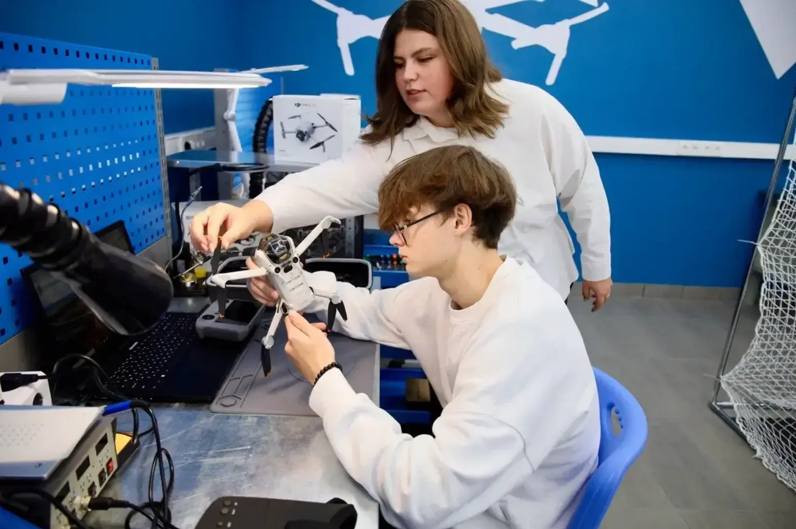 В колледже «Московия» обновили мастерские, в том числе по эксплуатации БПЛА, оборудовав их VR-тренажёром и трассой для полётов.