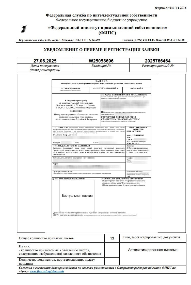 Экс-депутат Законодательной Думы Хабаровского края Петр Емельянов заявил о создании первой виртуальной политической партии. Соответствующие заявки уже направлены в Роспатент.