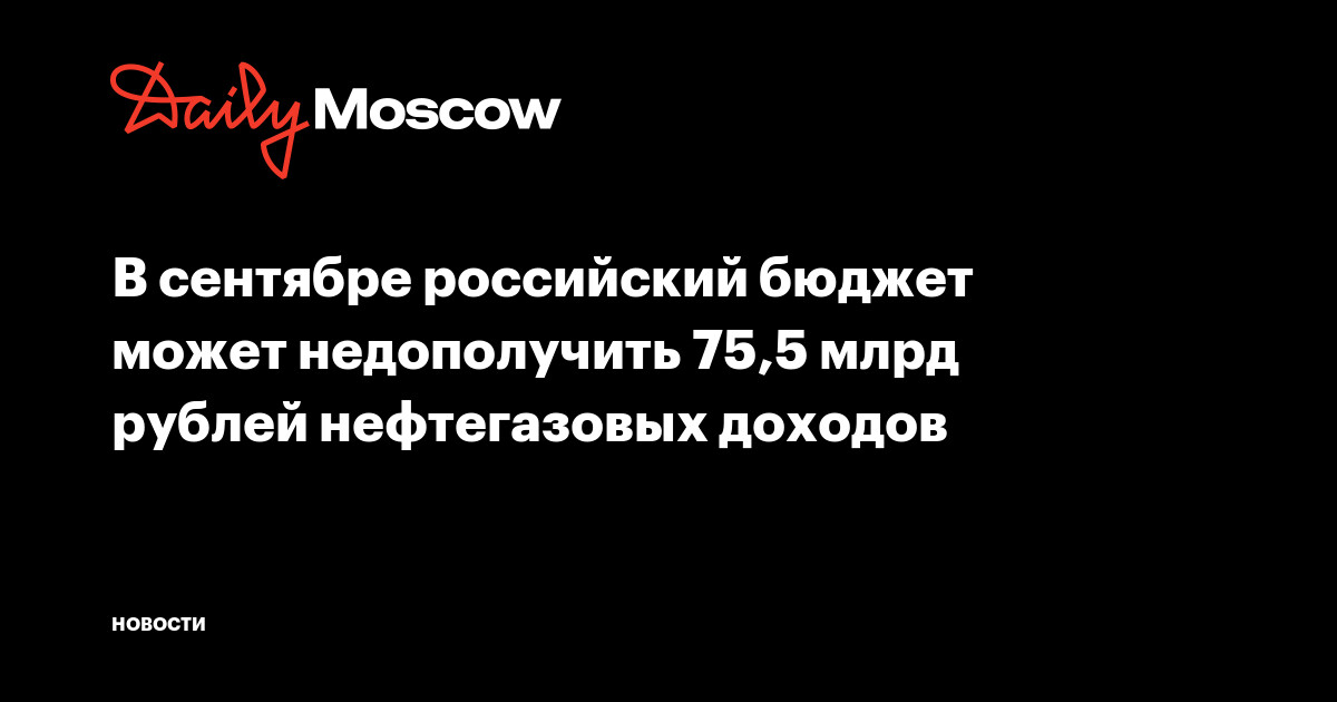 Министерство финансов России опубликовало на официальном сайте прогноз, согласно которому в сентябре этого года федеральный бюджет недополучит нефтегазовых доходов на сумму 75,5 миллиардов рублей.