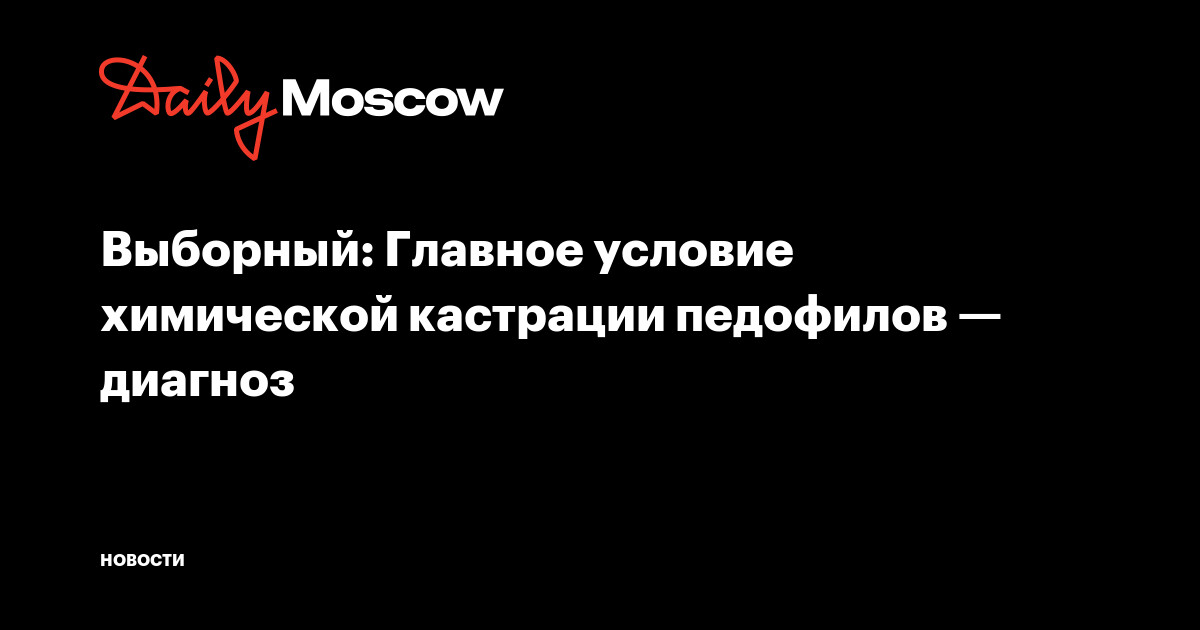 Депутат Госдумы, зампредседателя комитета по безопасности и противодействию коррупции Анатолий Выборный рассказал, что поставленный специалистами диагноз станет главным условием назначения принудительного медикаментозного лечения (химической кастрации) осуждённым за педофилию. О планах внести в 2022 году в ГД соответствующий доработанный законопроект он рассказал NEWS.ru.
