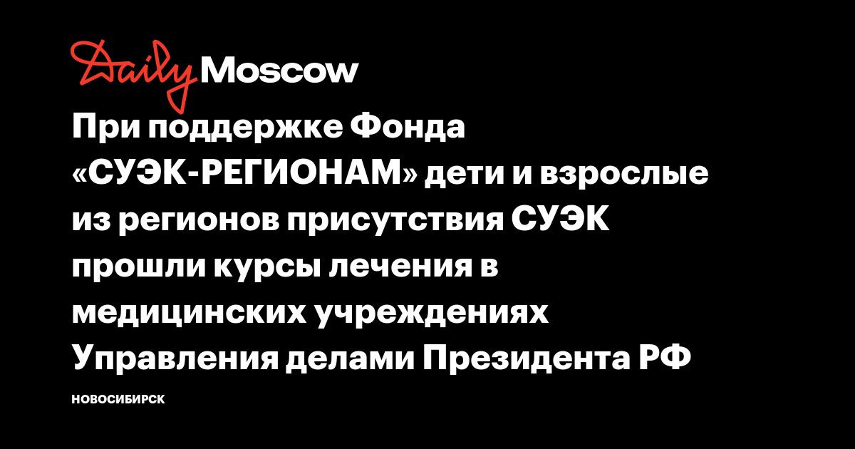 При поддержке Фонда «СУЭК-РЕГИОНАМ» дети и взрослые из регионов присутствия СУЭК прошли курсы лечения в медицинских учреждениях Управления делами Президента РФ