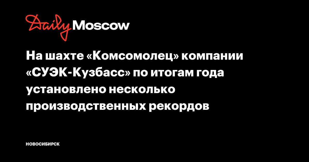 На шахте «Комсомолец» компании «СУЭК-Кузбасс» по итогам года установлено несколько производственных рекордов