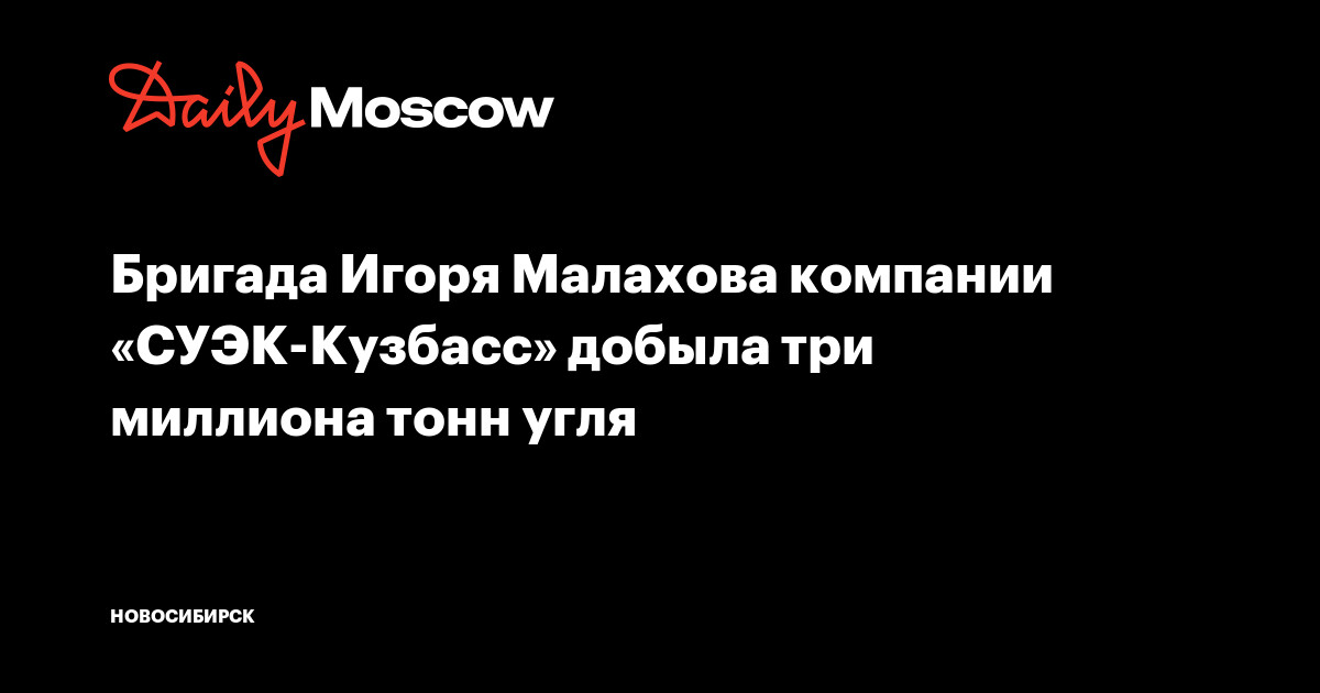 Бригада Игоря Малахова компании «СУЭК-Кузбасс» добыла три миллиона тонн угля