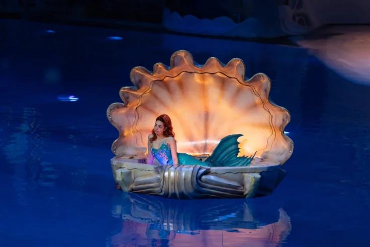 Пространство сцены превращается в иммерсивный мир с подвесными декорациями и масштабными 3D-объектами — от 10-метрового корабля до аниматронных морских существ.