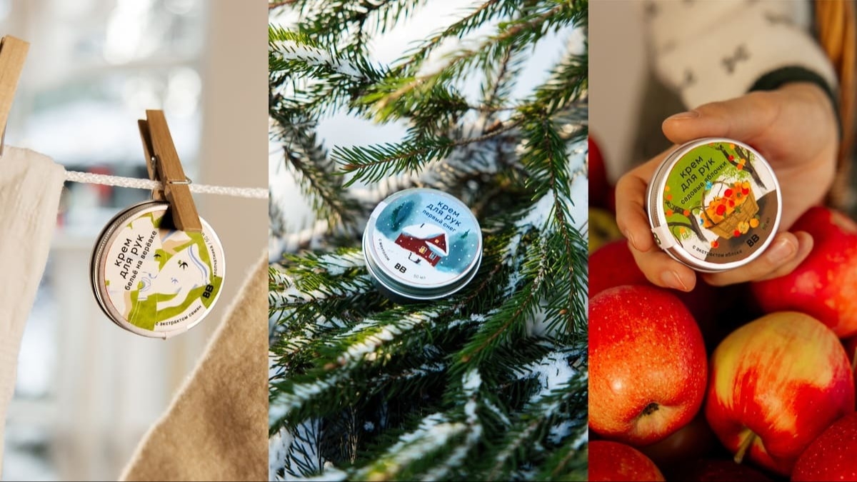 Первый снег, белье на веревке и садовые яблочки: ВкусВилл выпустил лимитированную линейку кремов для рук с ароматами из детства