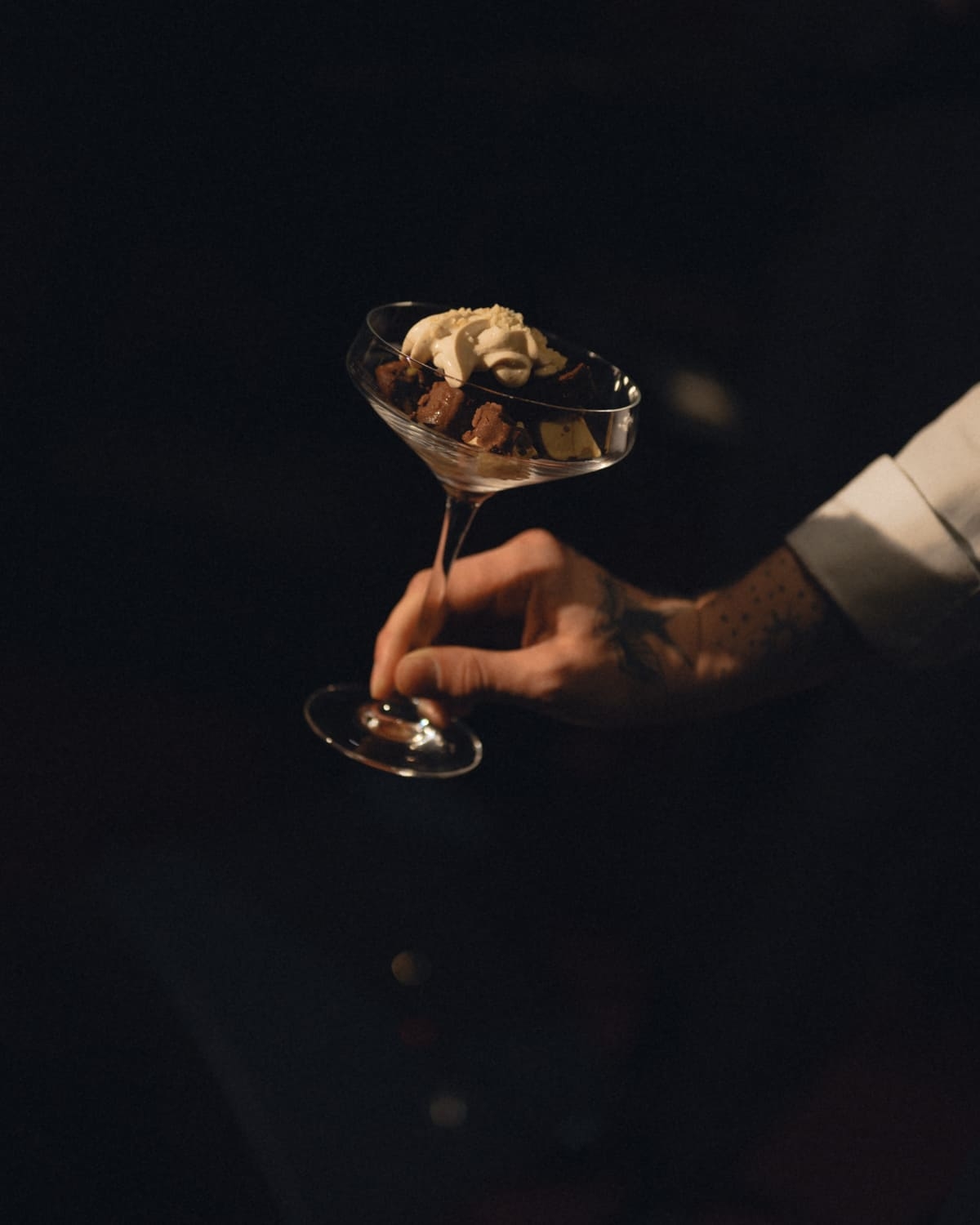 Главным сюрпризом вечера стало мороженое с крем-чизом, соусом солёной карамели и воздушным печеньем блонди, покрытым настоящим шоколадом.
