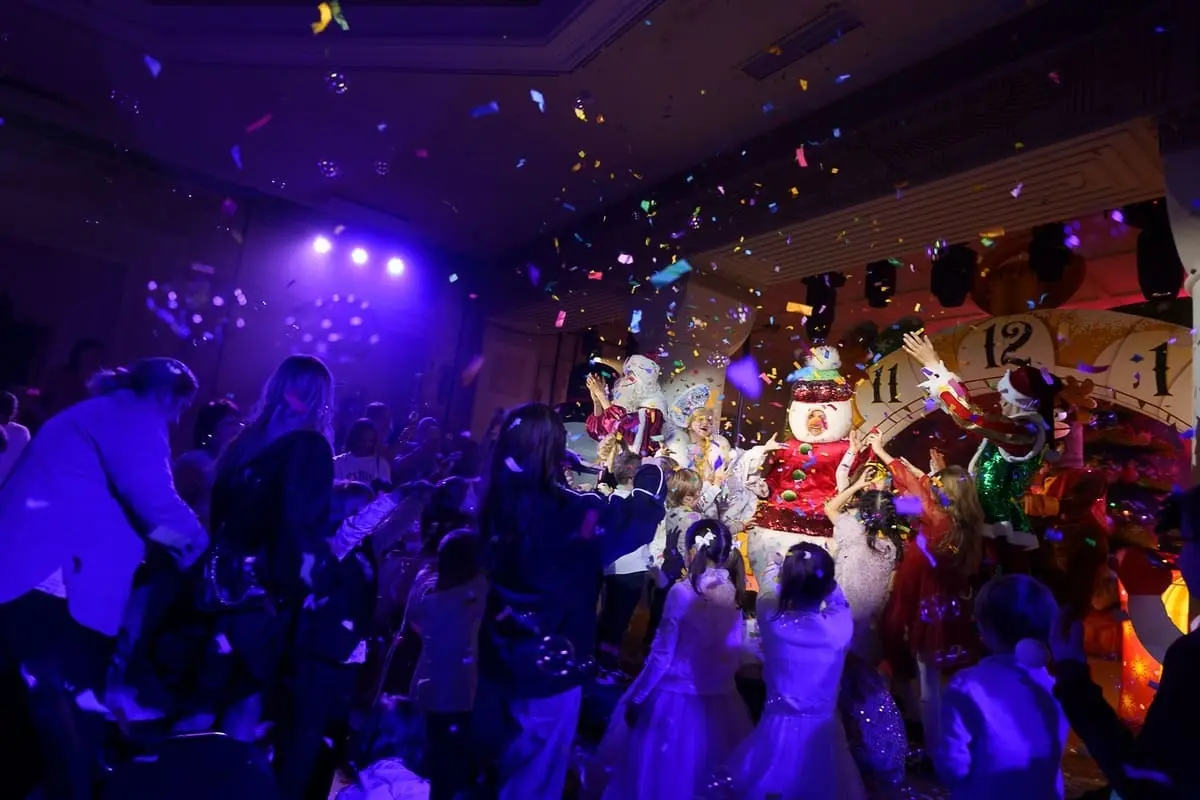 Детей ждало интерактивное шоу «Чудеса Дедушки Мороза», где они оказались в тайной комнате зимнего волшебника и стали частью магического представления. Иллюзии, исчезновения, телепортации, яркие номера, игры и викторины — каждый момент был наполнен удивлением.