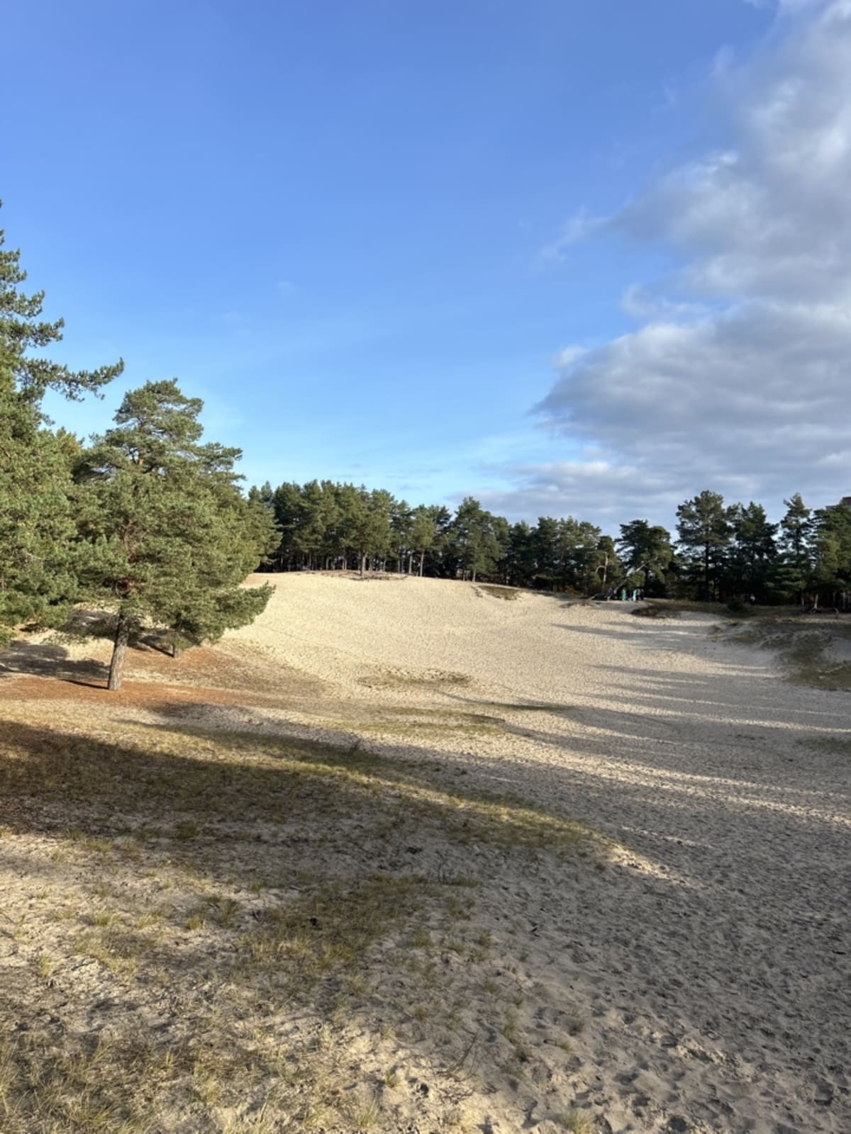 Действительно, песок здесь практически белый. В окружении сосен эта песчаная локация посреди города выглядит необычно, если не эпично.